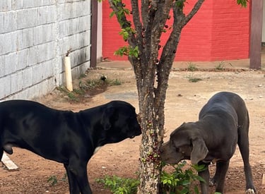 Estamos localizados em um ambiente tranquilo, ideal para a convivência com nossos cães. Venha nos visitar e conhecer Gaya e Logan.